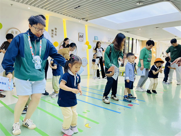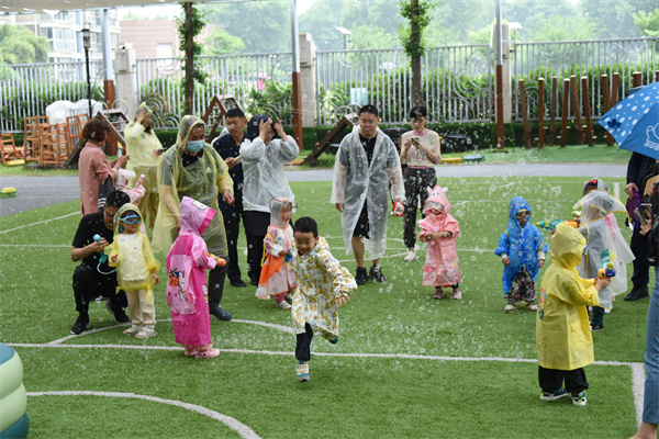 各年级组根据幼儿年龄段特点,从孩子们的兴趣出发,分别设计了“我是小先生”技能体验游戏、“缤纷瓜果”运动与益智类游戏、“重温传统”非遗技艺与民间游戏、“清凉一夏”戏水游戏,引导孩子们在游戏中将“经历体验”转化为“知识经验”,释放天性,快乐成长。活动中,托小班宝宝们在爸爸妈妈的陪伴下一起运动、一起玩水、享受亲子游戏的乐趣;中大班的孩子们作为“小先生”,带领爸爸妈妈寻找游戏场地、讲解游戏内容,共同体验他们自己设置的游戏活动,充分体现了幼儿园在陶行知“小先生制”思想引领下构建的以“儿童为中心”的学习生态,展现了幼儿园里“新时代小先生”的风采风貌。