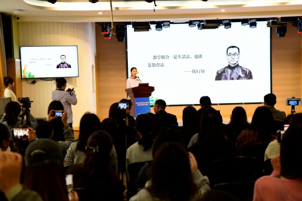 江苏省陶行知纪念馆馆长、南京晓庄学院陶行知研究院党支部书记、中国陶行知研究会理事何文秋作题为《弘扬教育家精神 践行陶行知教育思想》的主旨报告,阐述了陶行知先生教育理念的时代价值,激励和引导广大教师以陶为师,以教育家精神为引领,努力成为教育家型教师,行知式大先生。