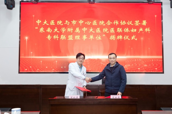 在与会人员见证下,南京市中心医院党委书记、院长顾平与东南大学附属中大医院党委委员、副院长沈杨教授签署“沈杨教授工作站”合作协议,市中心医院正式挂牌成为“东南大学附属中大医院医联体妇产科专科联盟理事单位”。