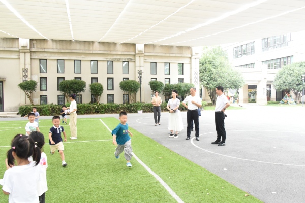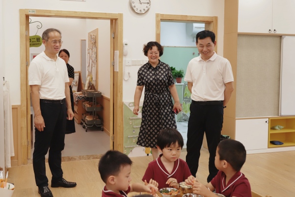 在机关一幼,张小平一行察看了教学楼门厅暑期改造项目,对彰显园所文化与南京地方特色的环境创设给予赞赏,随后走进教室,了解开学适应与进餐情况,并细致察看为低龄幼儿专门配置的适龄化桌椅等硬件设施。张小平向辛勤工作的教职工致以诚挚的节日问候,并希望机关一幼继续坚持科学办园、特色发展,进一步深化托幼融合与课程创新,着力打造彰显南京韵味、机关品质的学前教育品牌,在全市高质量发展中展现更大作为。