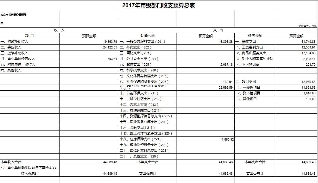 2017年部门预算总额44689.48万元,其中:财政补助收入19863.79万元,事业收入24122.05万元,事业经营收入703.64万元。