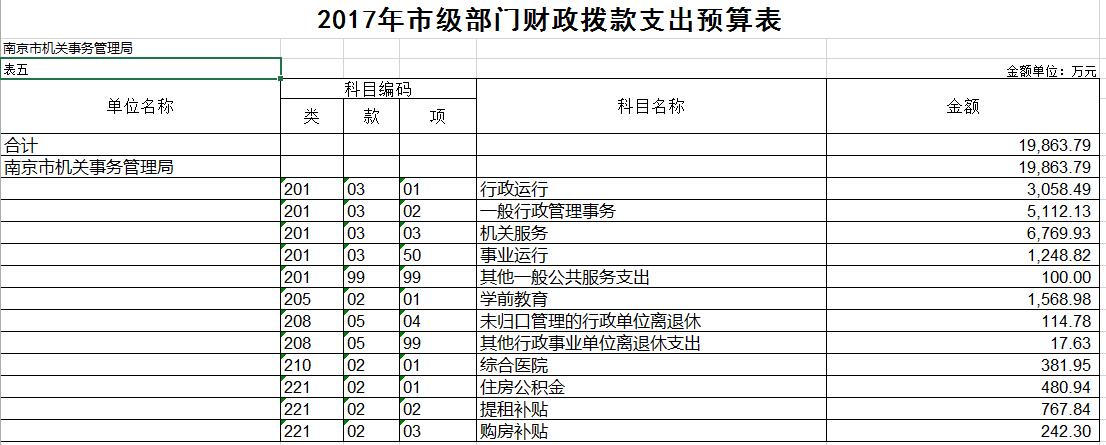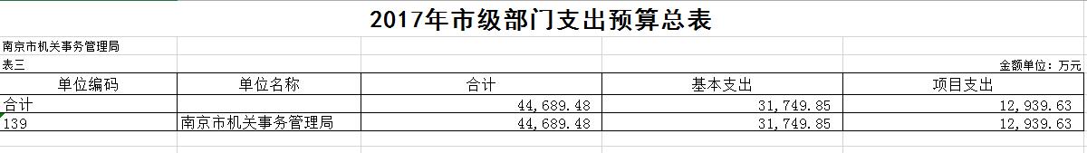 | 信息名称: | 南京市机关事务管理局2017年部门预算公开 | ||