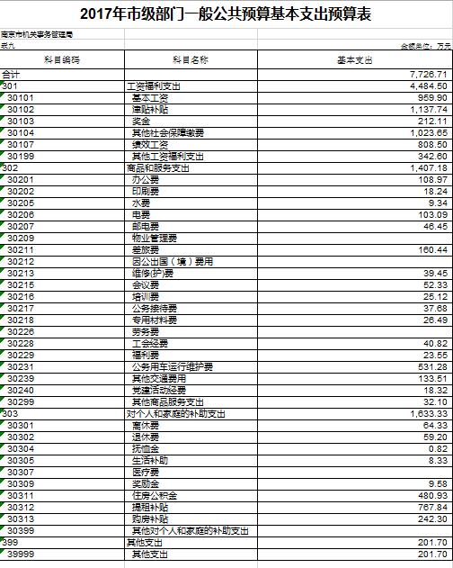 第二部分南京市机关事务管理局部门2017年度部门预算表