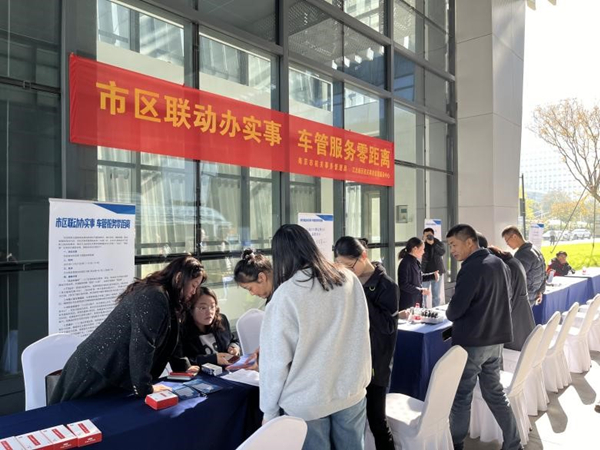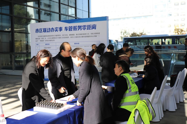 11月21日,市机关事务管理局“车管服务零距离”直通车开进江北新区管委会,来自市交通管理局车管所、公车中心和有关企业的20多名党员、青年为新区干部职工开展“一站式”车驾综合业务服务。